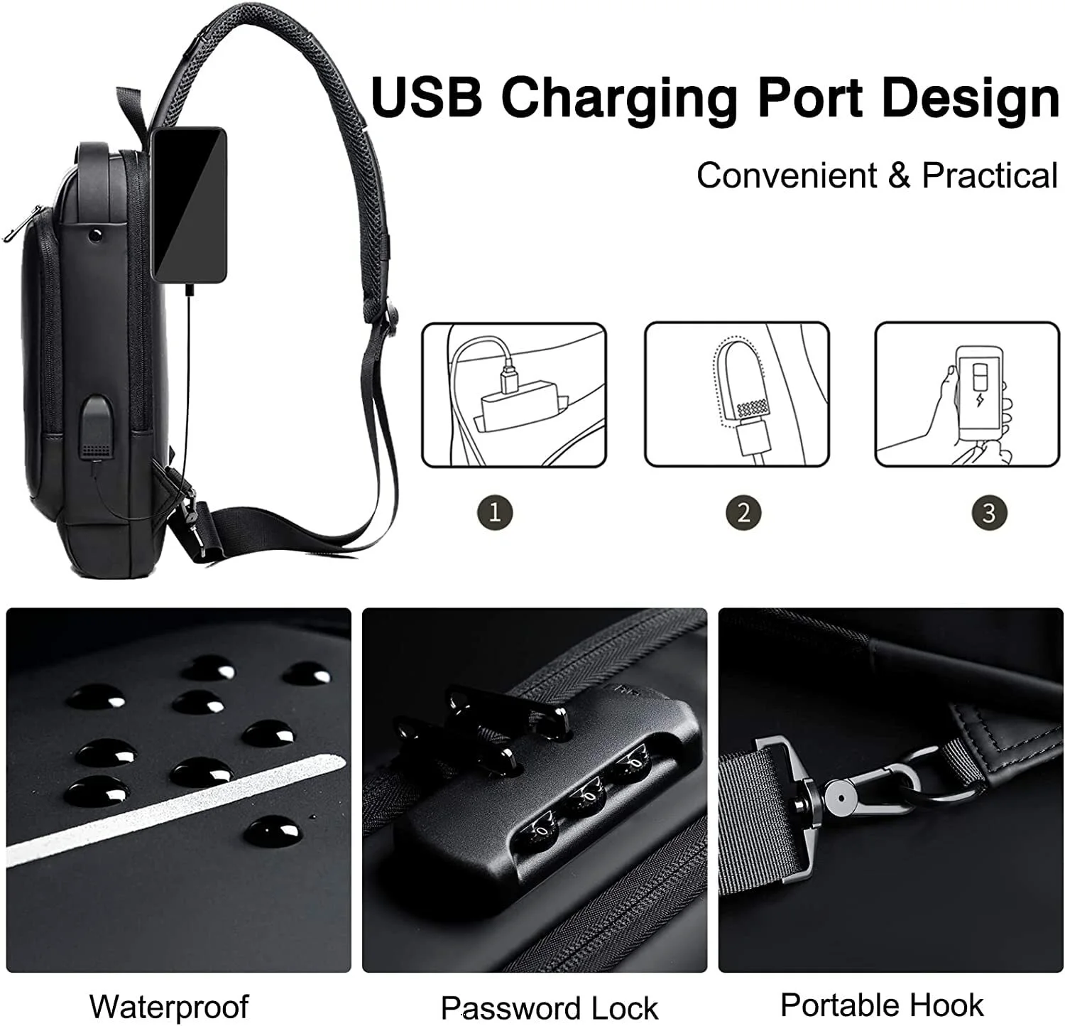 شاحن USB، رياضي، سعة كبيرة، مقاوم للماء
