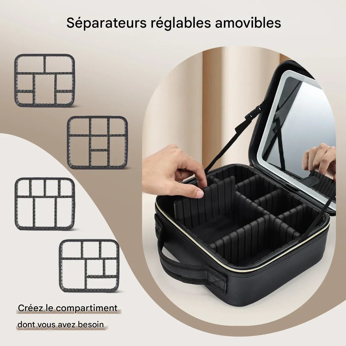 سعة كبيرة بما يكفي: حقيبة مستحضرات التجميل للسفر كبيرة بما يكفي لحمل جميع أغراضك الأساسية. يمكنك تخصيص التصميم وفقًا لاحتياجاتك لوضع طلاء الأظافر والفرش ومنتجات التجميل الأخرى.